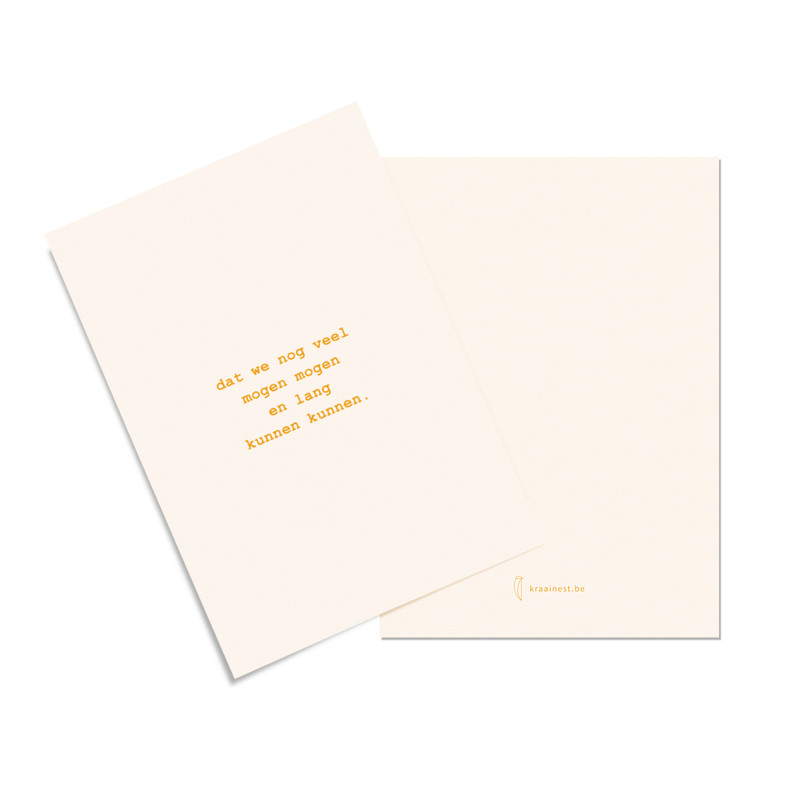A6 enkele kaart (148 x 105 mm). Het kaartje wordt altijd geleverd incl. enveloppe.